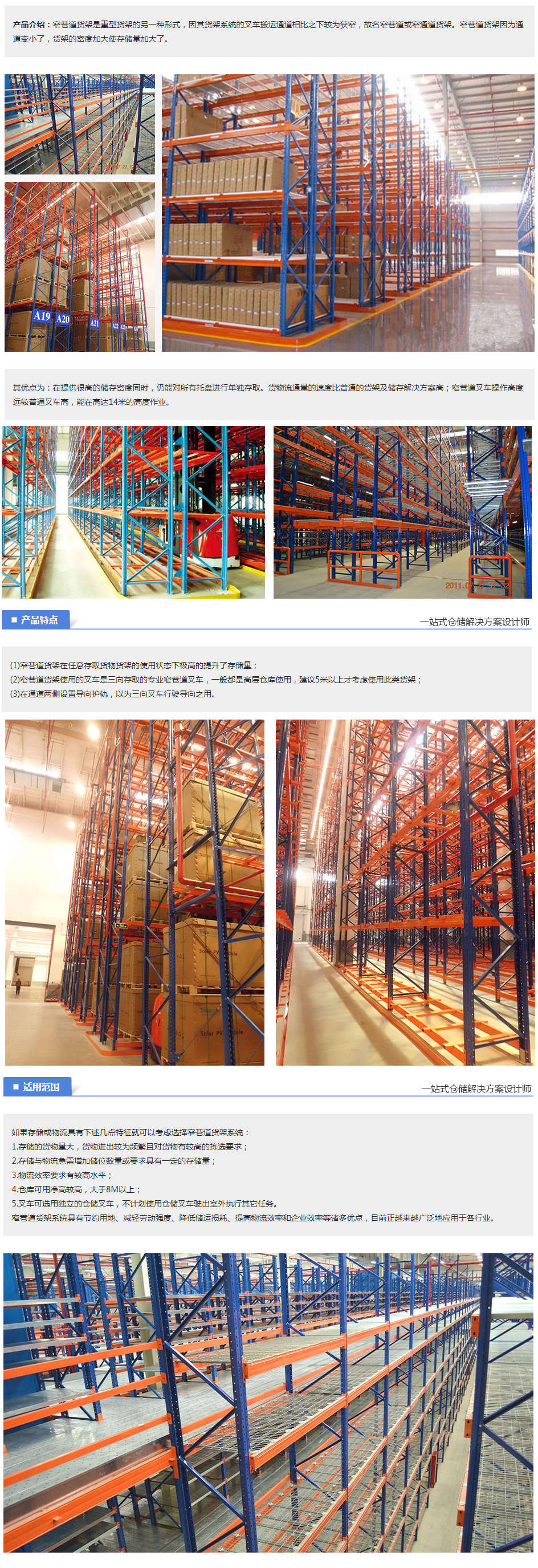 产品种类:窄巷道货架 货架承载:500KG~2000KG 常规颜色:根据客户需求定制 货架价格: 由于货架结构较为复杂,所以不能马上给您报价,如果您有需要的话可以先与我们联系,我们会安排专业工程师去现场查勘,并设计出合适您的货架。
